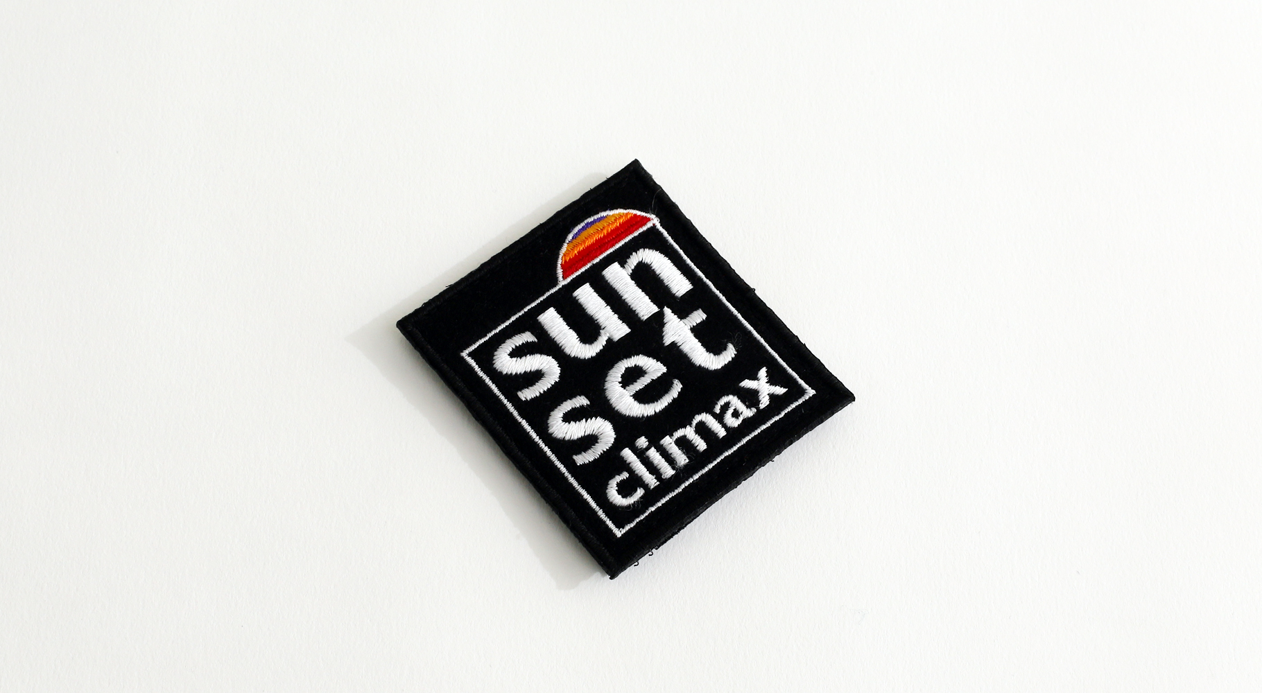 sunsetclimaxロゴのベルクロパッチ(ワッペン)。立体感ある刺繍が特徴。裏面がベルクロ仕様となっているのでベルクロメス(マジックテープ)付きのギアや衣服、バッグなどにアイロン不要で着脱可能。お気に入りのギアのカスタムに。